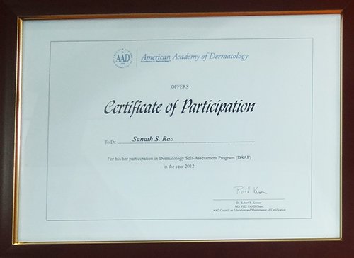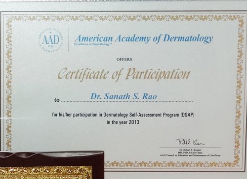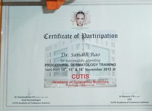 Dr. Sanath S. Rao is the founding chairman of this clinic and is a Consultant Skin specialist & Cosmetologist . He has done his M.B.B.S, M.D in Dermatology, Venereology & Leprosy. He has been awarded for the best paper in contact dermatitis INDUBALA MEMORIAL AWARD and have attended many national & international coferences. He has also published many paers in national and international journals.